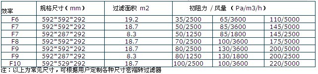 初效过滤器(密褶式) 过滤材料为玻璃纤维过滤纸,超细聚丙烯过滤纸,外框为铝合金,分隔物为热熔胶,密封胶为聚氨酯,效率为( F6-H10 五种)中新—亚高效。 特点:过滤面积大,阻力小,寿命长。可焚烧环保。 常见尺寸: